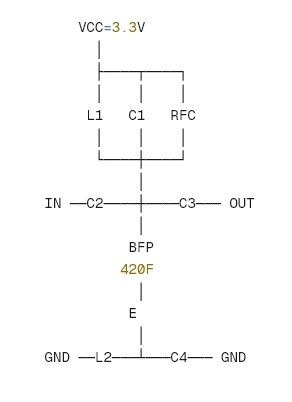 天线开关 ──► BFP 420F LNA ──► 混频器 ──► ... ──► 功率放大器(外部)